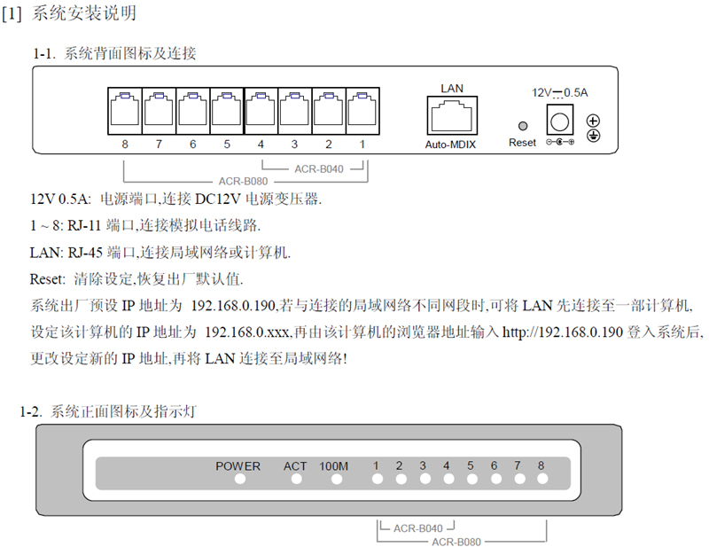 專案限量ACR-B080 ACR-B080錄音系統可同時記錄8條電話線,無需電腦即可執行錄音工作,透過瀏覽器可查詢及監聽錄音狀態;