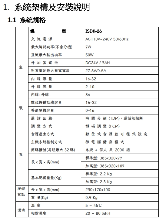 聯盟ISDK-26主機一台(基本容量2外線16內線)