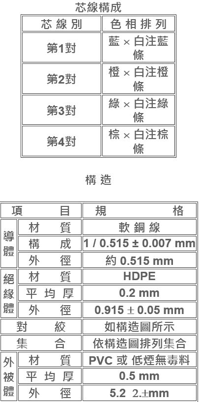 區域網路用電纜,可直接傳送數位信號,如電腦、視訊、監視等,符合EIA / TIA. 568b及ISO 11801規定。