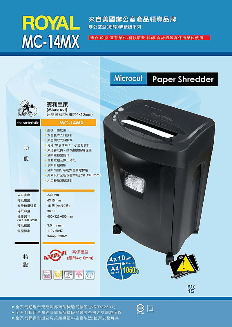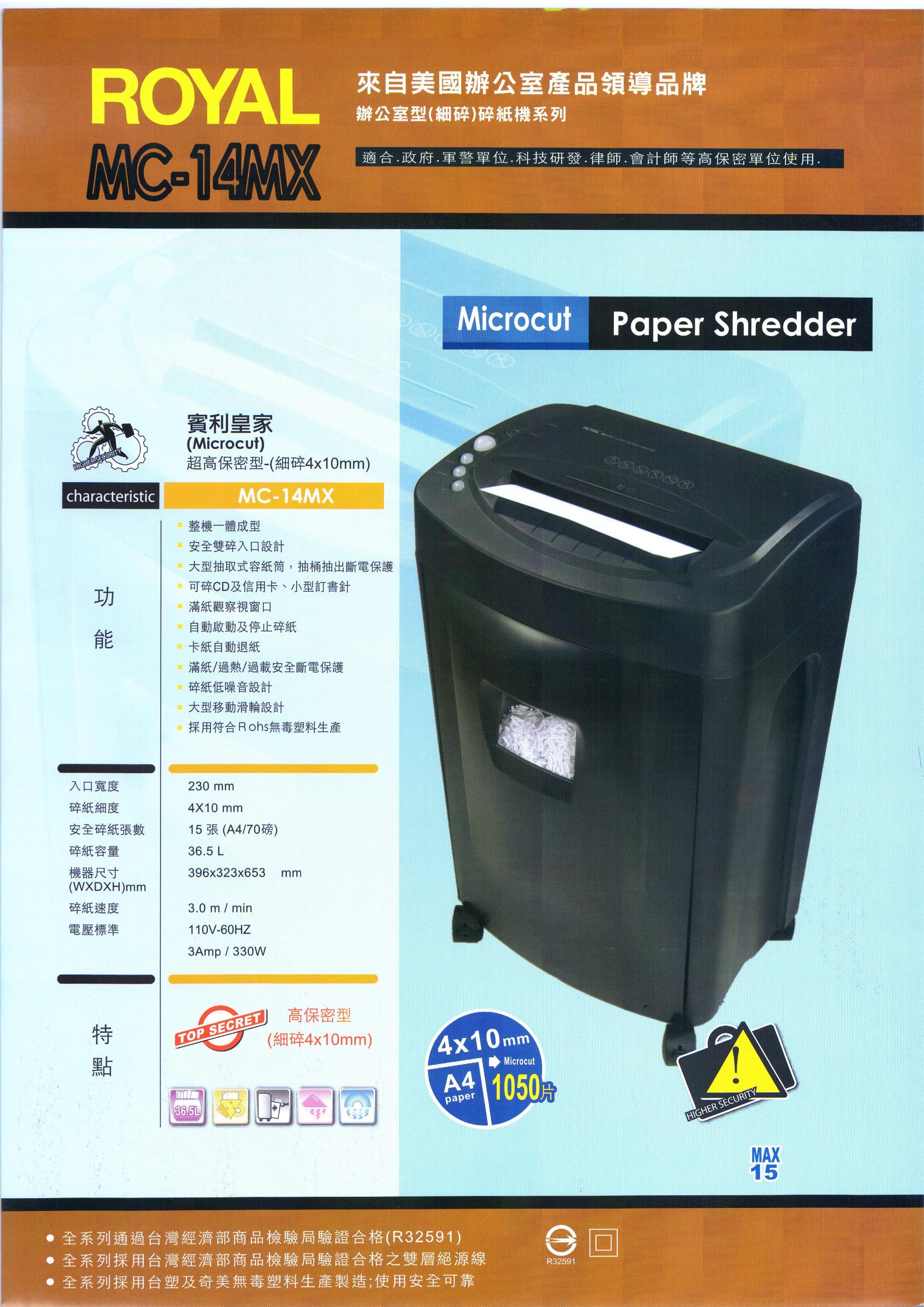 型號:ROYAL碎紙機MC-14MX細碎型