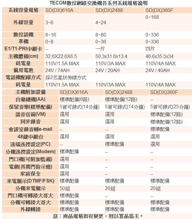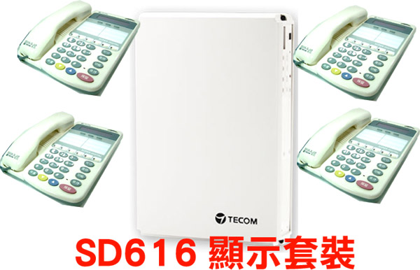SD-PK99 TECOM東訊 SD616 顯示總機套餐 (促銷加送(6路自動總機120秒彈性錄音)(6路來電顯示)(分機遙控設定贈品價值9700元 ((6鍵顯示免持對講型數位話機4台 (型號:SD-7706E))外線容量 基本 3