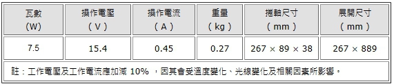 : 太陽能電池-->【F15-450N】7.5W折疊式薄膜太陽電池商品查詢代碼:QK61626