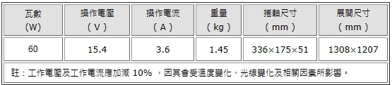 型號:【F16-3600】60W折疊式薄膜太陽電池    供貨狀況: