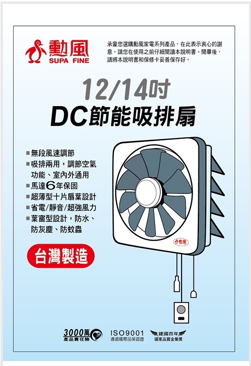 12吋DC節能吸排扇