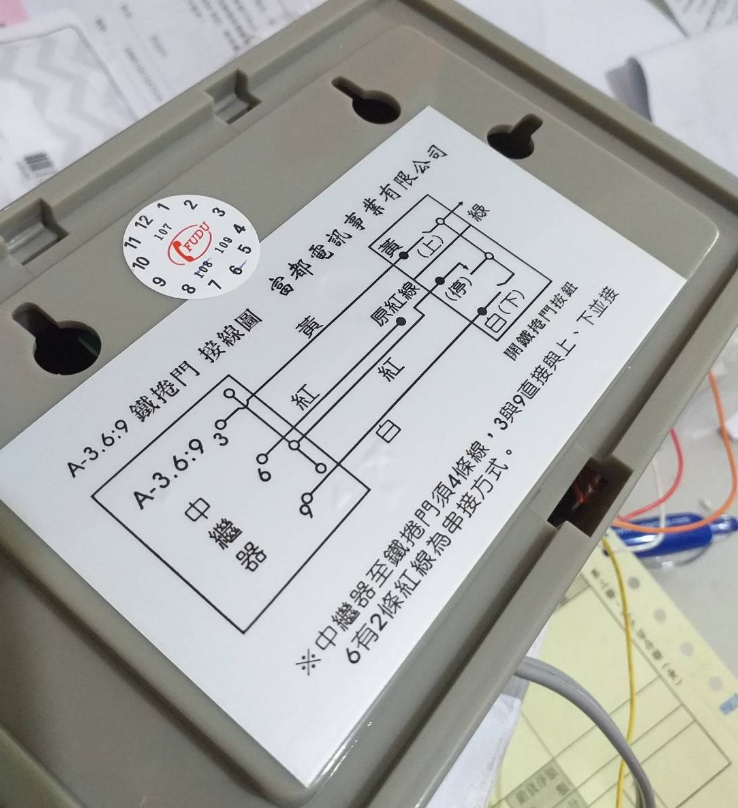 功能: 以3.6.9代碼開啟電動門,3為開、6為停、9為關,上停下:斷電