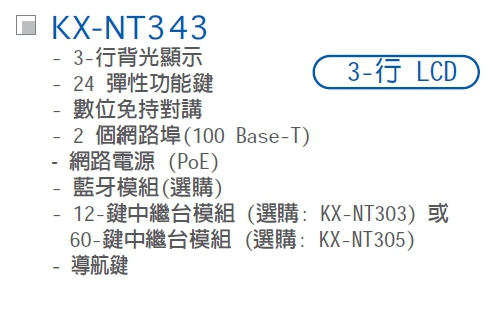 專案限量Panasonic KX-NT343 IP Phone 3-行 LCD