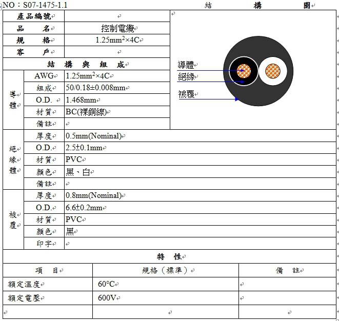 導線線徑1.25mm平方