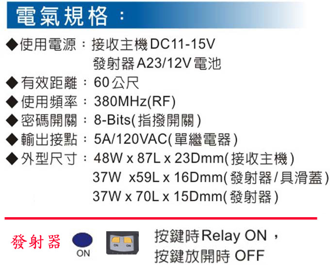 專案限量LK-102RC 無線搖控開關(可做無線緊急求救按鈕)