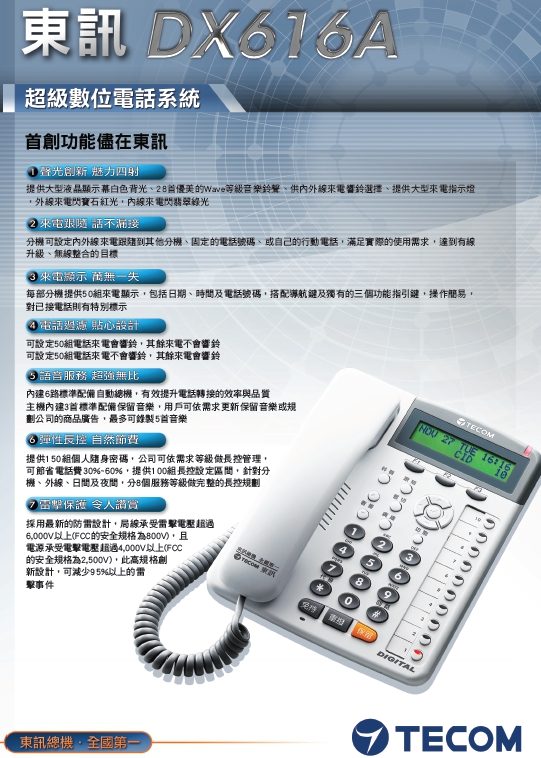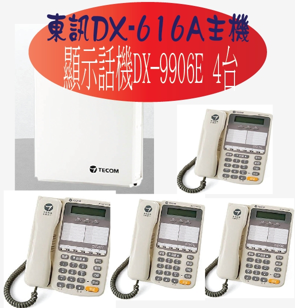 SD系列-->總機電話.東訊DX-616A主機x1台(可接3外8內)顯示話機DX-9906Ex4台商品查詢代碼:QK63828