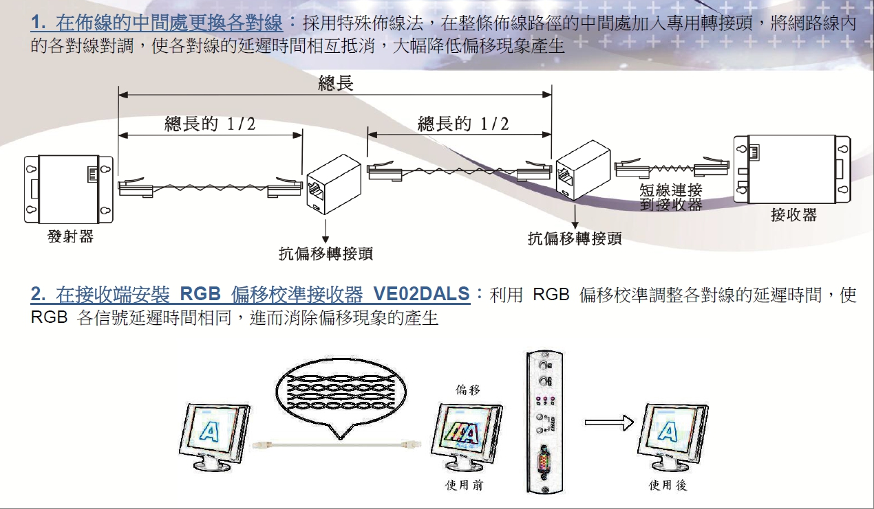 l 可另選購接收器:VE02DALS (解決長距離傳輸影像偏移問題)