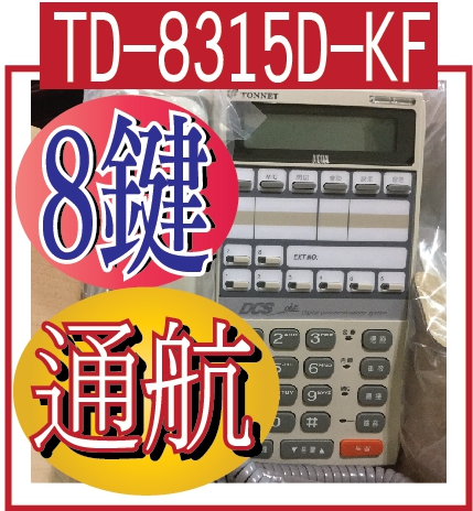 專案限量2021 最新版通航電話機TD-8315D-KF 通航電話機TD-8315D 8鍵顯示型數位話機-TONNET 通航電話機主要功能: ◎上下可調及壁掛兩用底座 ◎大型液晶顯示幕 ◎多組彈性功能鍵設定 ◎免持聽筒撥號 ◎雙色三型態LED指示燈◎數位式多段音量調整 ◎多方會議電話 ◎分機單鍵直撥