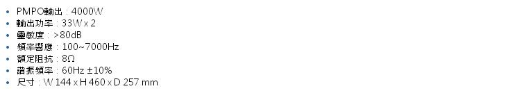 • 頻率響應:40Hz~20kHz,