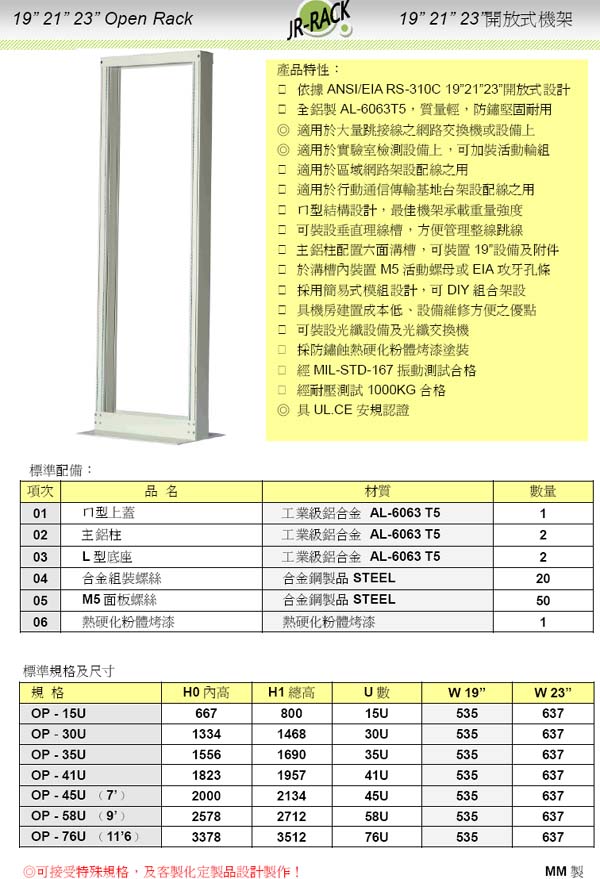 0-->19吋鋁開放式機架 OP-15U商品查詢代碼:QK65456