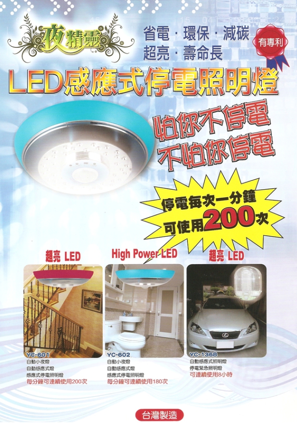 感應燈-->YC-601商品查詢代碼:QK65588