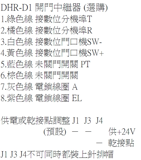 DHR-D1 開門中繼器 (數位式訊號門口對講機專用) 具輸出 DC24V 供電鎖開門使用(若已選購各型