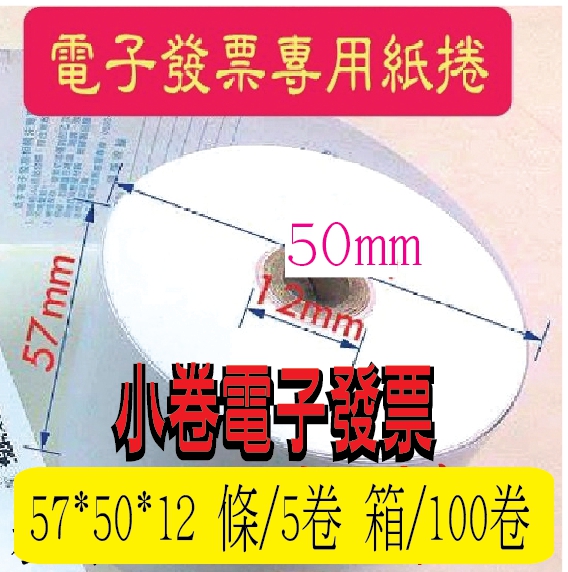電子發票專用紙捲.符合財政部SGS測試標準電子發票(公版)無雙酚A 57*50*12 條/5卷 箱/100卷 ##訂製品恕不退換####訂製品恕不退換##