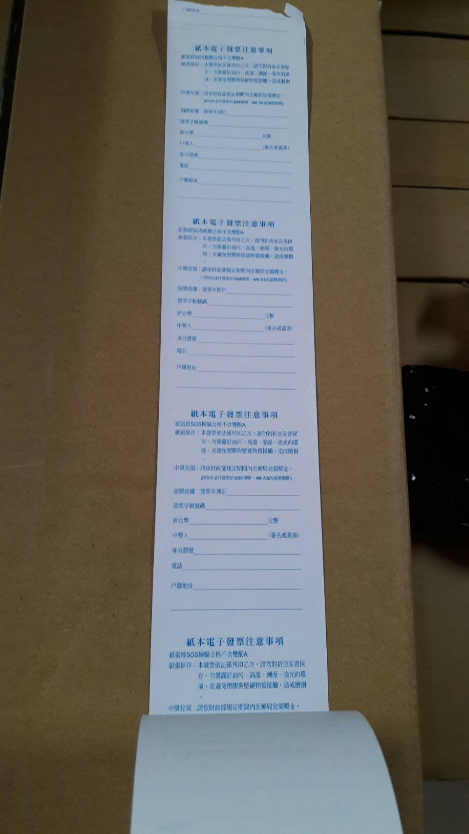 型號:電子發票(公版)無雙酚A 57*50*12 條/5卷 箱/100卷
