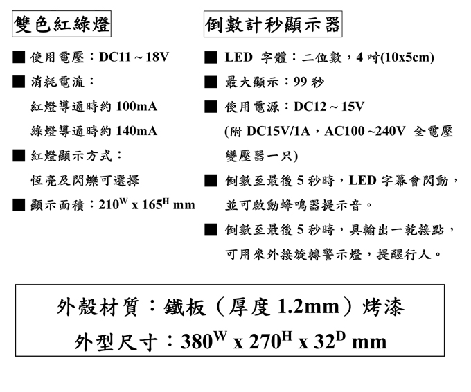 型號:平板雙色LED紅綠燈箱含倒數計秒顯示器 LK-1045