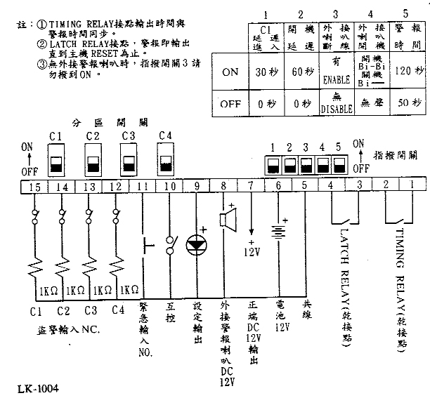 1.盜警第一區可進入延遲警報選擇(免得自己進門來時,警報大響)