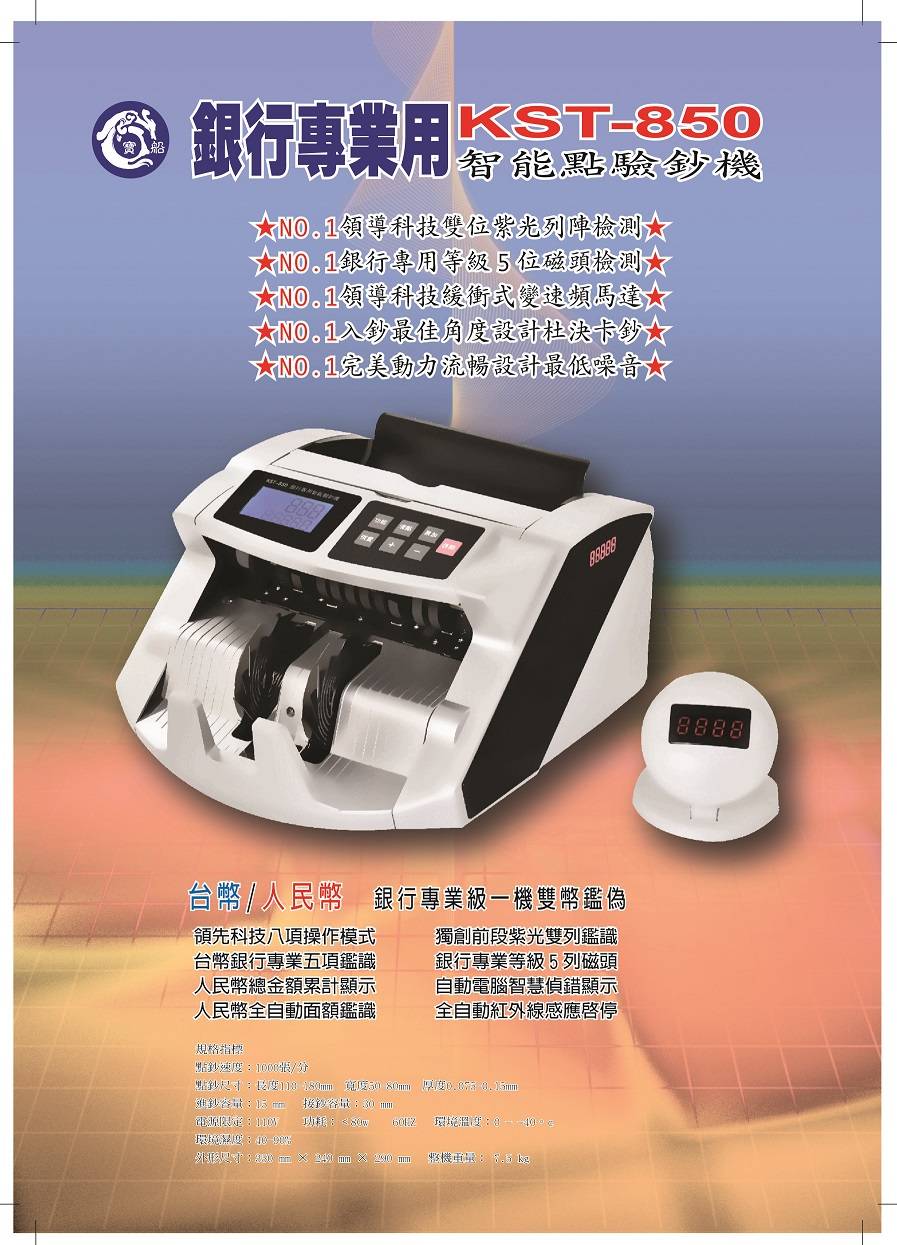 KST-850 專業全自動點驗鈔機(新台幣/人民幣) |