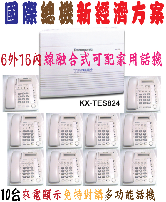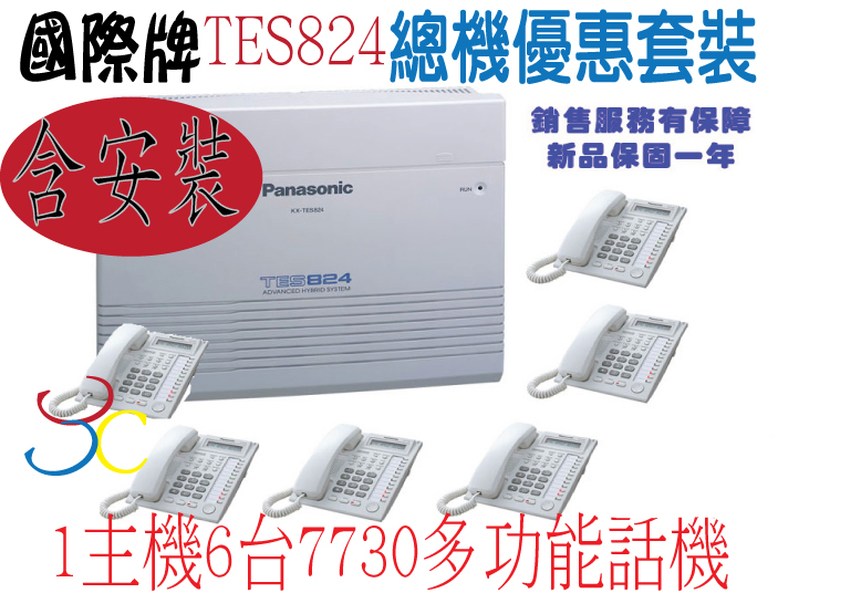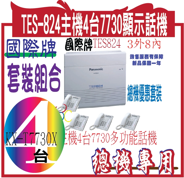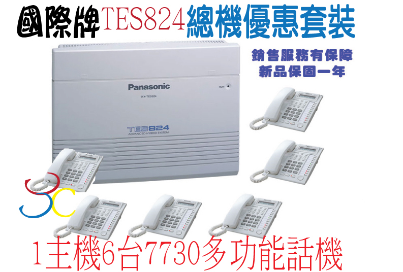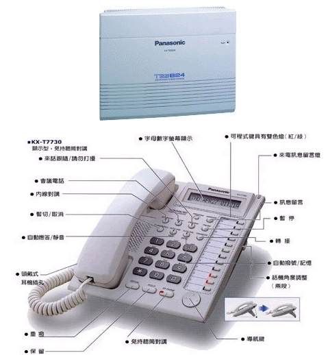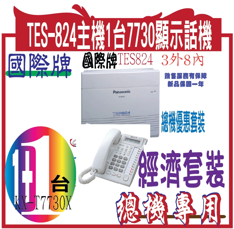 | : KX-TES824-->TES824經濟類比套裝1+8 Panasonic {TES824經濟套裝 308主裝置一台 螢幕顯示型話機KX-T7730一台} 可搭RS-802HF*7 (北北基含安裝)商品查詢代碼:QK68628 | ||||||||||||||