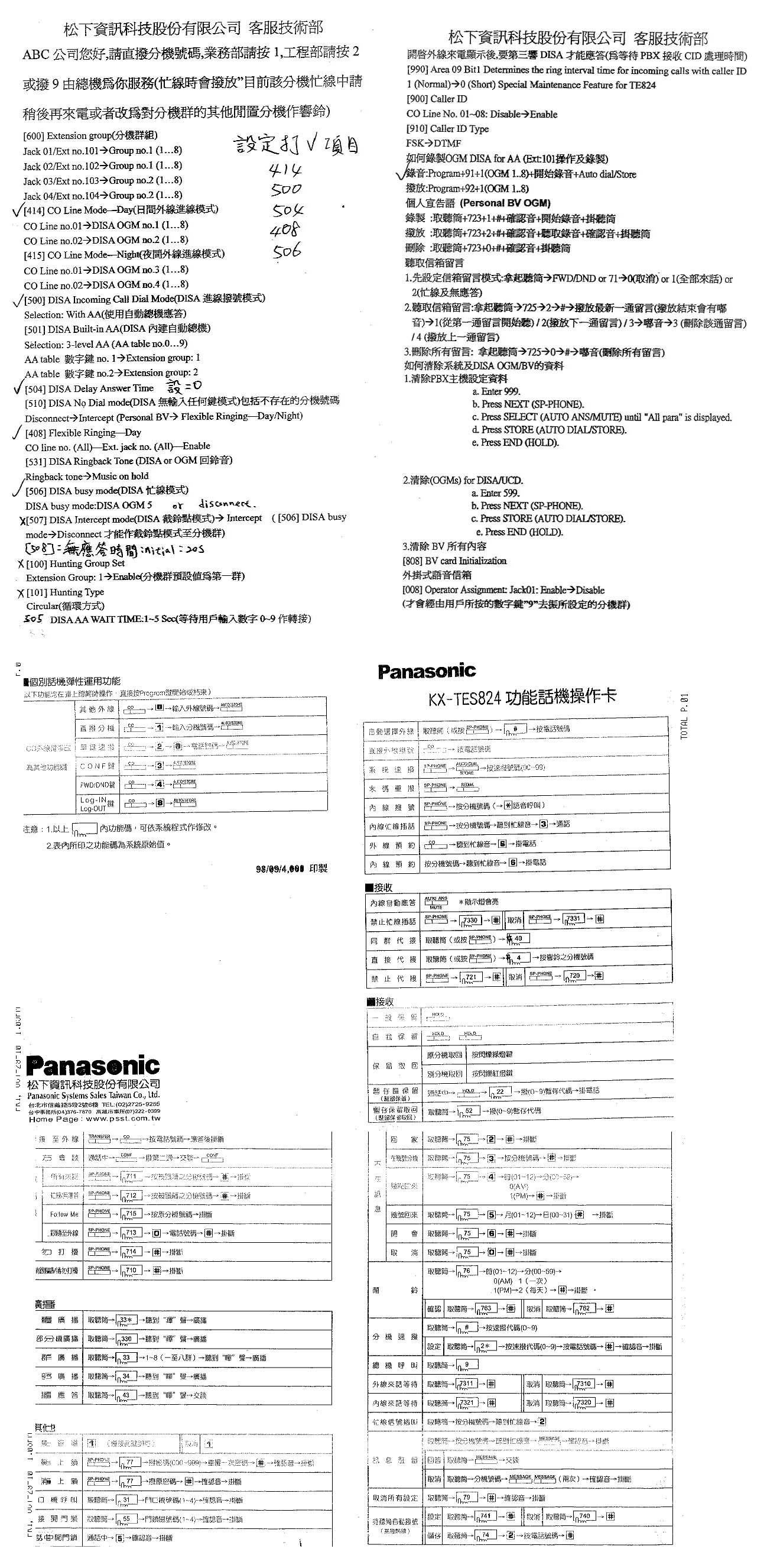 | 專案限量TES824經濟類比套裝1+8 Panasonic {TES824經濟套裝 308主裝置一台 螢幕顯示型話機KX-T7730一台} 可搭RS-802HF*7 (北北基含安裝) | ||||||||||||||