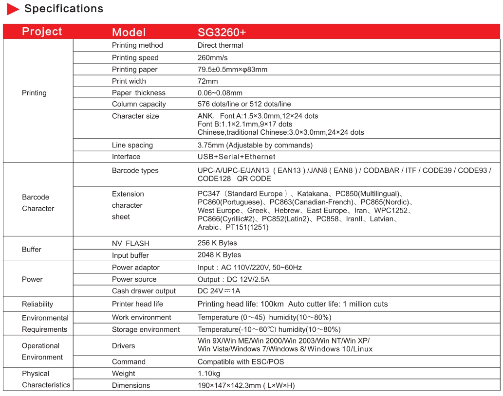 SG3260+ 替代機種 TM-200廚房印表機 替代機種 (可選擇不同的介面) 一聯式熱感印表機SG-3260+ |
