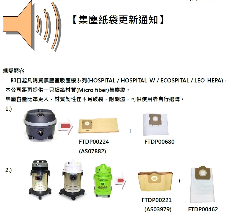 型號:義大利HOSPITAL FTDP00680 細纖材質(Micro fiber)集塵袋。