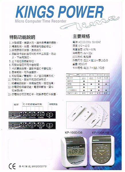 KING POWER KP-100A單色 指針式小 LCD*採用日本原裝印字頭,壽命持久*