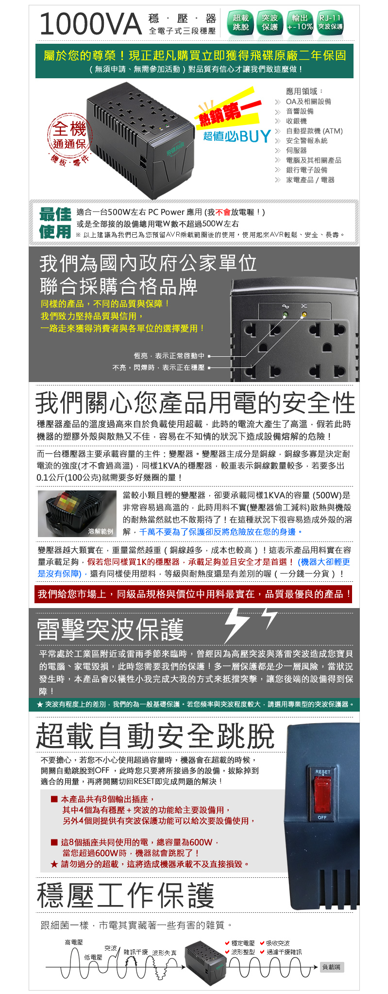 專案限量飛碟AVR-E1000P 1KVA全電子式穩壓器AVR (三段)