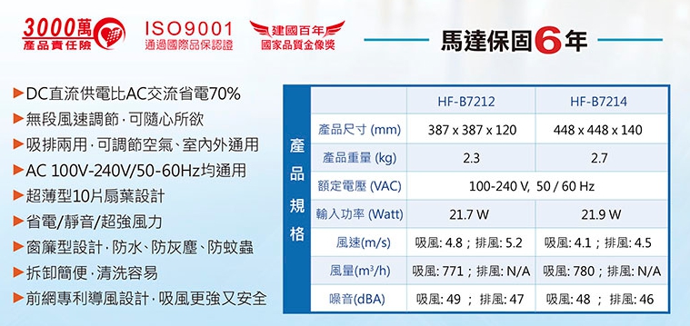空調扇-->【勳風】12吋DC節能吸排扇(HF-B7212)商品查詢代碼:QK78491