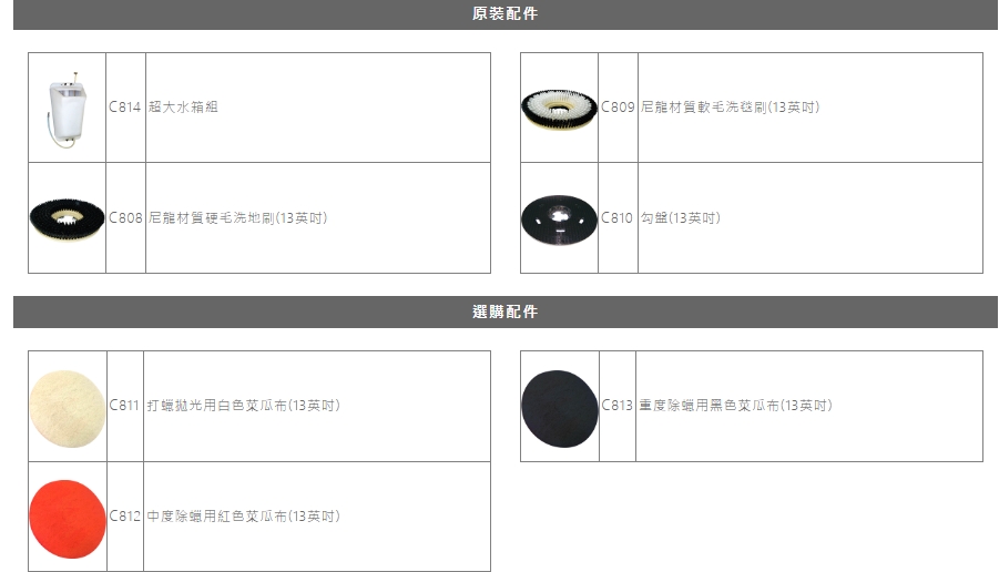 多種刷盤選擇,能克服任何環境清潔需求。 |