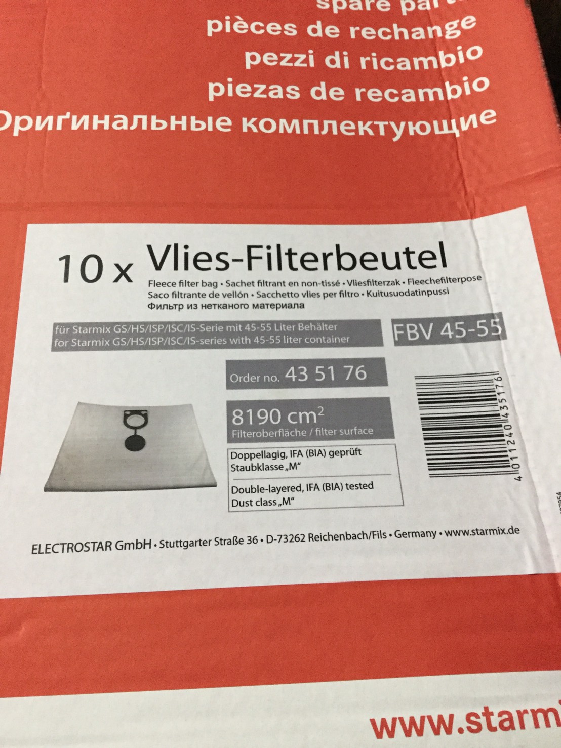 型號:Starmix 德國吸特樂 ISC ARDL-1450羊毛集塵袋 FBV45/55 5入
