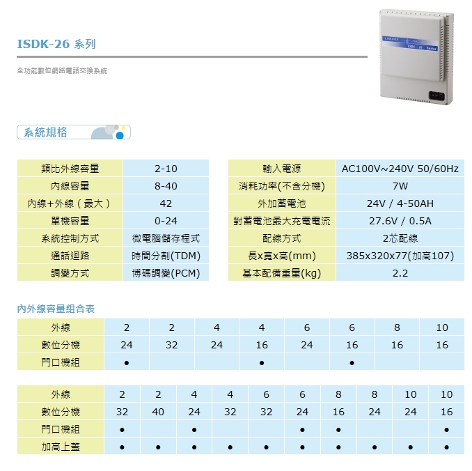 型號:聯盟套餐組ISDK-26 KSU(DSP)+ ISDK 8TD*4 + ISDK CID8路來顯卡*1+6路DISA