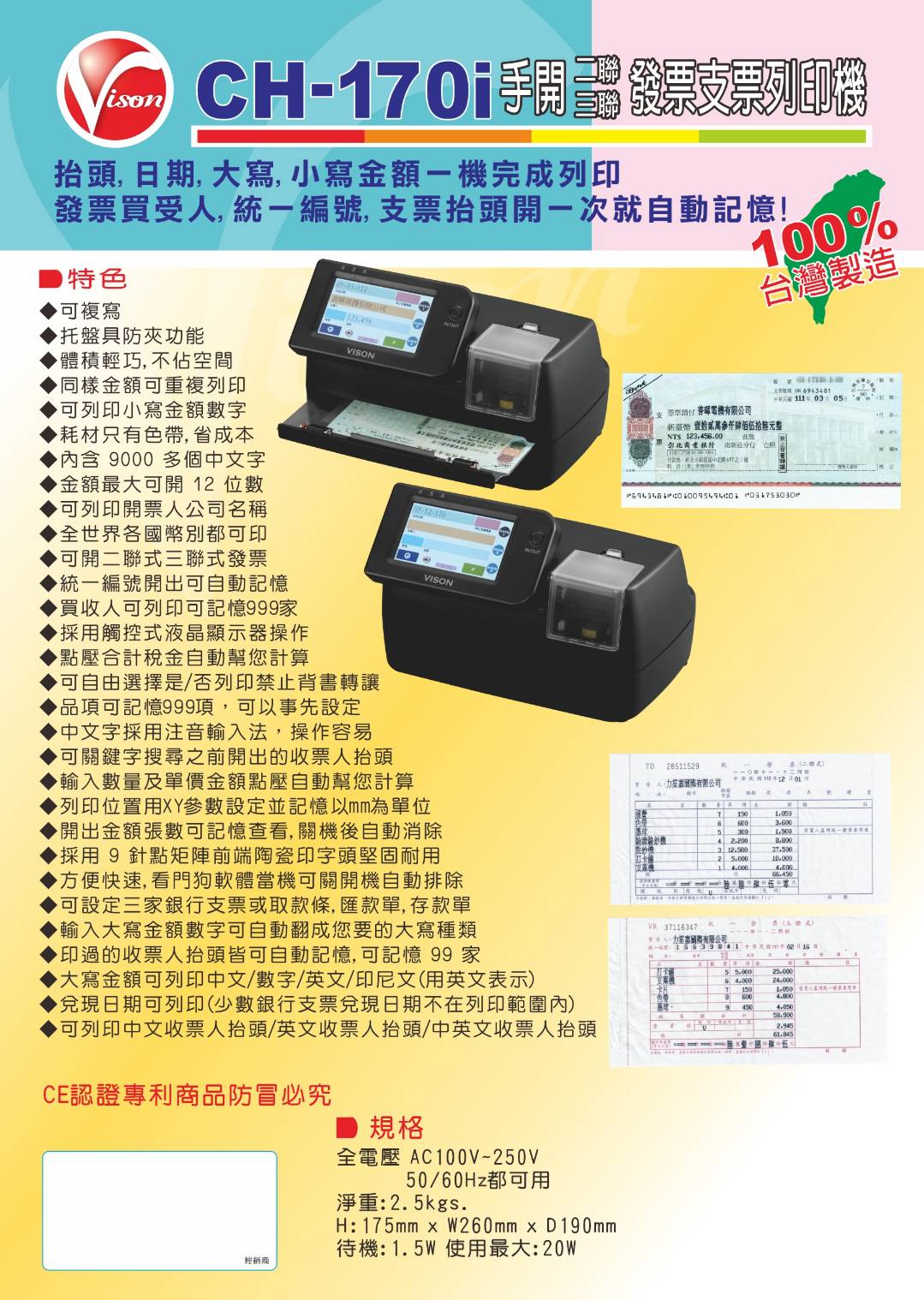 VERTEX-->電子(發票用)支票列印機 CH-170i商品查詢代碼:QK79951