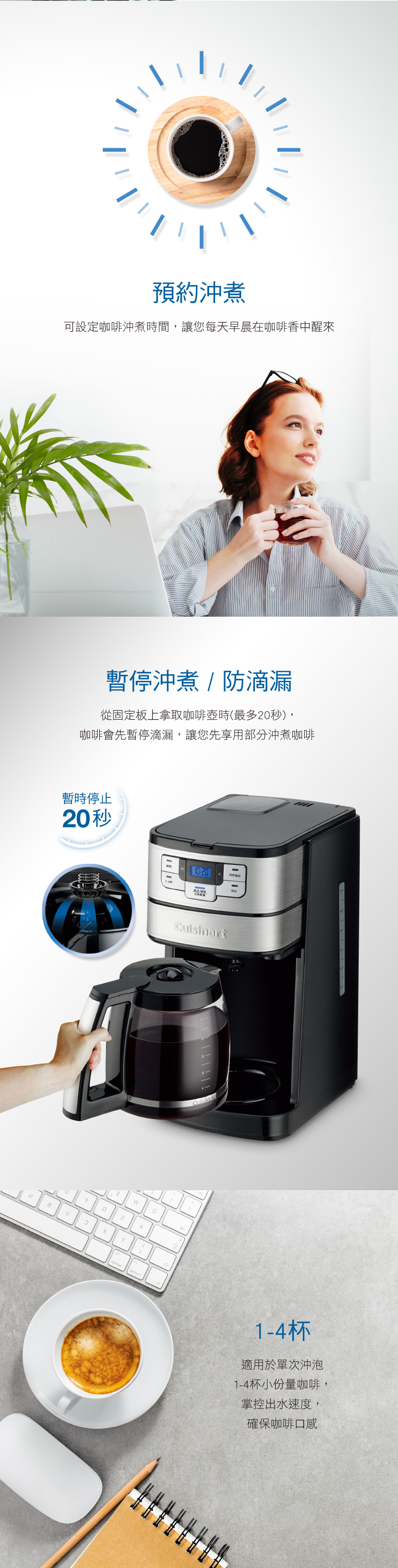 •預約研磨濾煮咖啡:小時與分鐘設定鍵,讓您早晨可隨時來杯咖啡