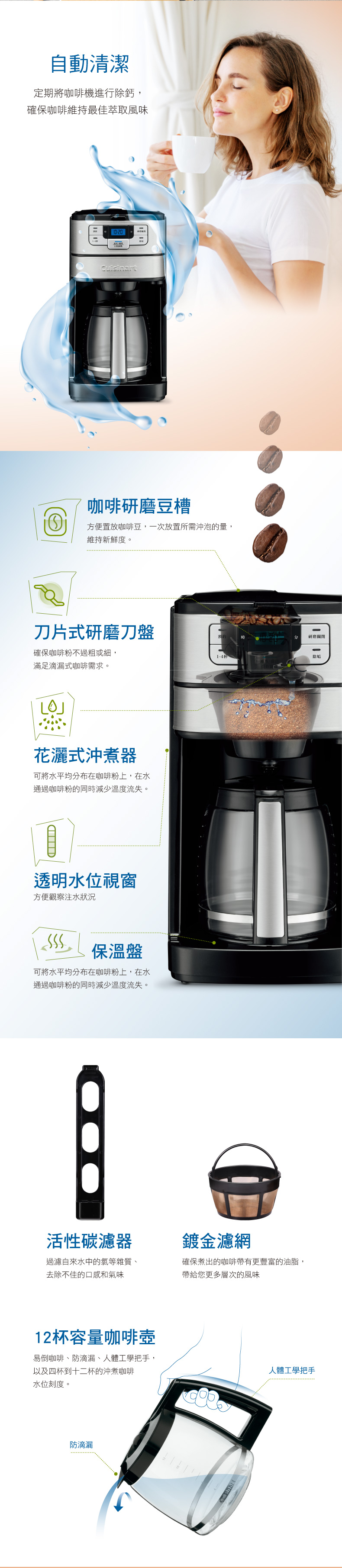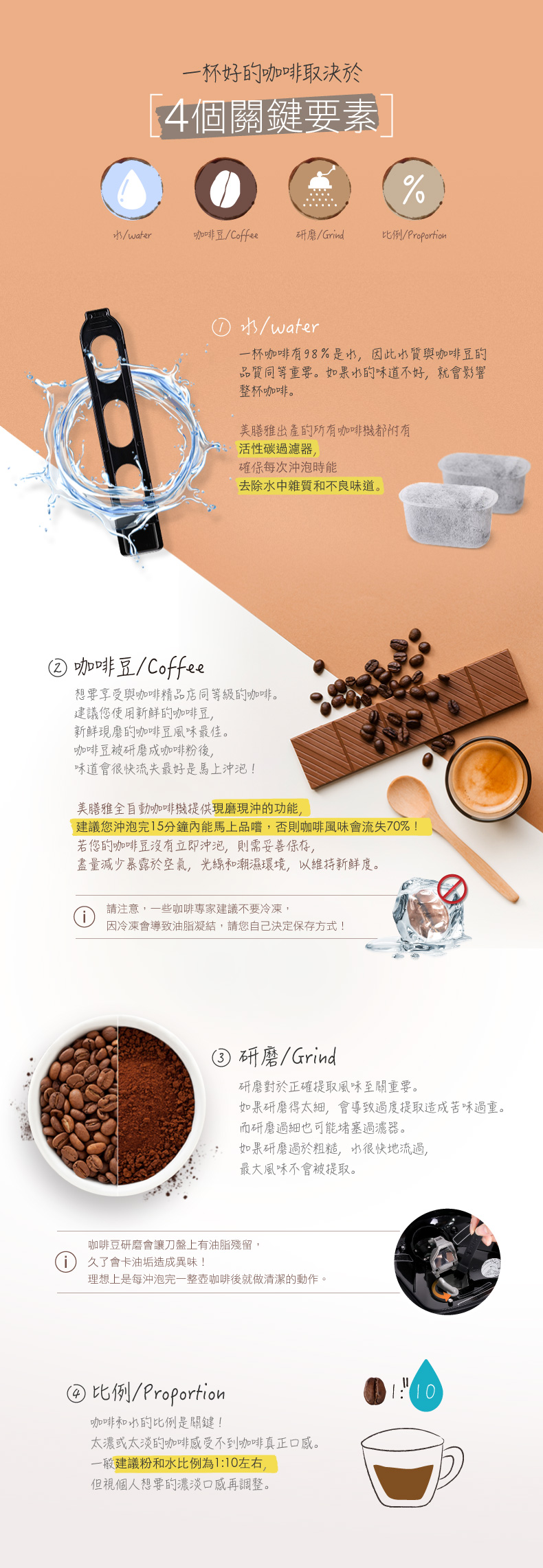 •附拋棄式活碳過濾器,和永久性金屬過濾網,確保最新鮮和醇淨的咖啡風味