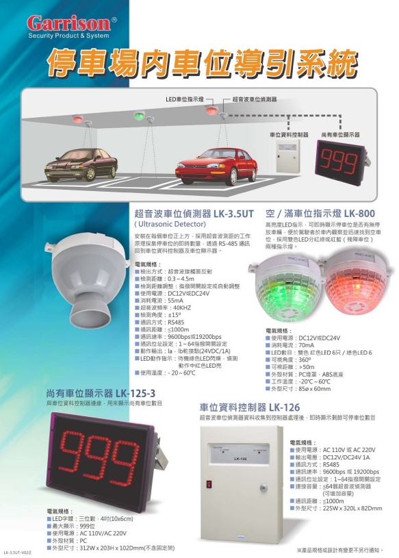 型號:Garrison 超音波車位偵測器 LK-3.5UT 系統型