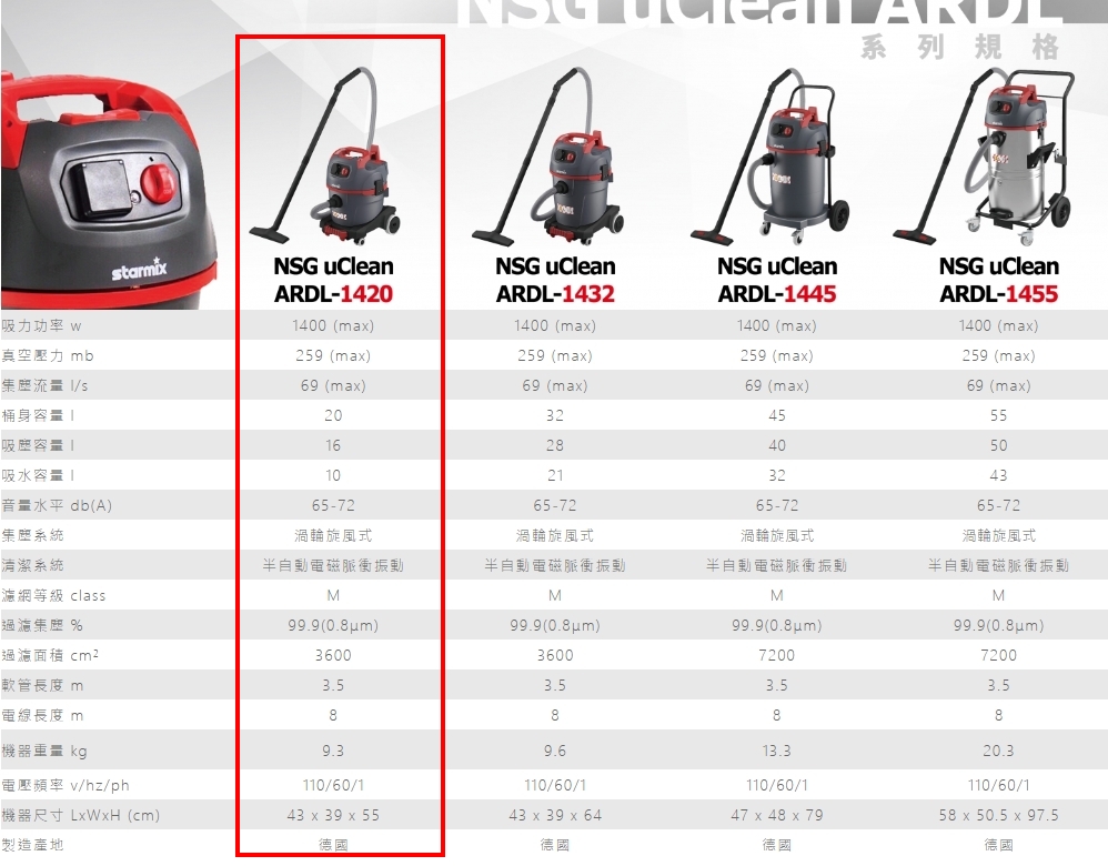 型號:NSG uClean ARDL-1420 半自動電磁脈衝清潔乾溼吹三用吸塵器