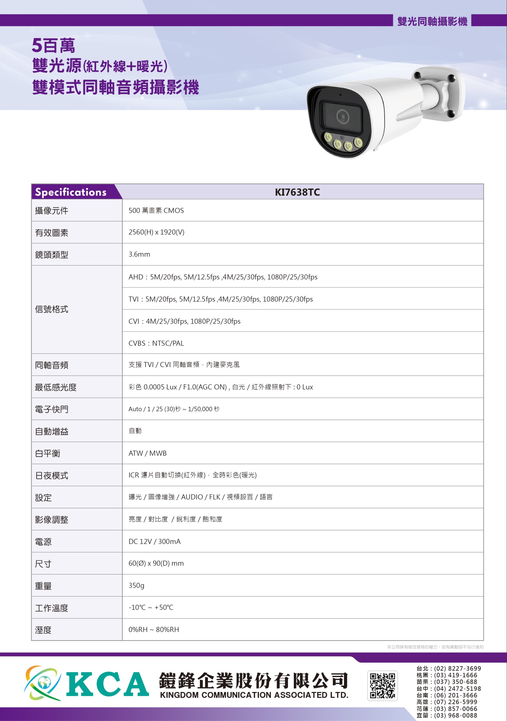 專案限量K17638TC 雙光雙音頻 5MP 攝影機 新上市 優惠價 650/支@肆件超值組合 好朋友分享匯款價